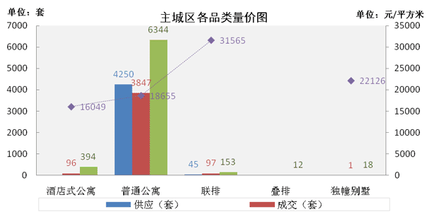 从产品类型上看,4月份别墅类产品成交量增加较多,由3月份的14套上升到98套。其中联排别墅存销比缩小到了3:2,为近几年来的最低值,但成交均价环比下降了11%。普通公寓在4月新增供应大于成交,使得期末存量上升到6000套以上,存销比大约为2:1。