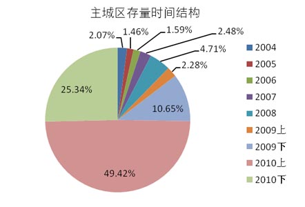 存量的构成看,目前存量中2010年上半年推出的房源占49%,是库存积压的主要来源。