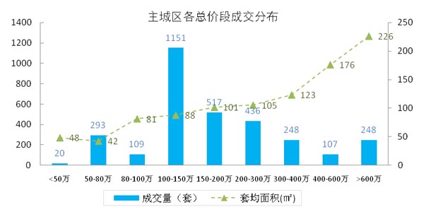 成交单套总价100-150万的在8月市场中占了绝对优势,占总量的比例超过1/3;