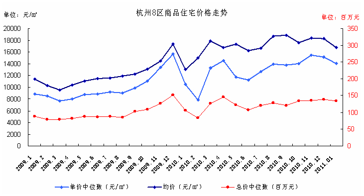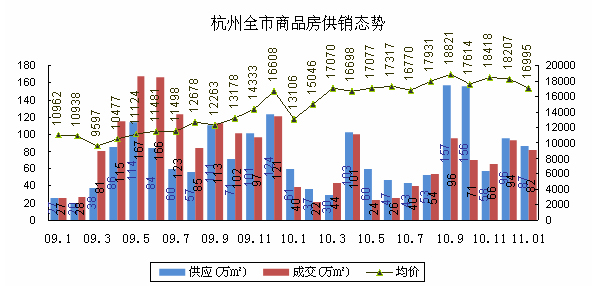 杭州全市(8区)商品房市场1月份共申领出48个预售证,房源总计7387套,总面积85万平米。其中主城区商品房源3182套,总面积36.4万平米; 杭州全市(8区)商品住宅1月份新增供应总计6974套,总面积79.3万平米。其中主城区房源2991套,总面积33.5万平米. 全市新开盘项目13个:其中主城区3个,余杭5个,萧山5个。万科草庄项目在邻近春节前首度推盘。