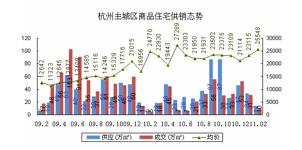 受新国8条以及杭州细则月底才出台影响,2月份杭州商品房供应偏少。