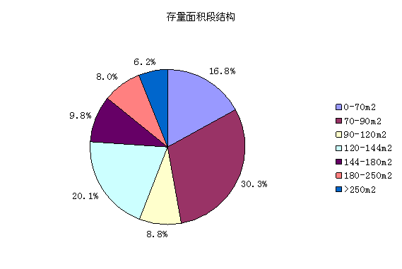 各种面积段普遍出现供过于求,仅90-120方产品供求基本平衡。尤以250方以上大户型供求失衡严重,供求比高达4:1,存量大幅增加。