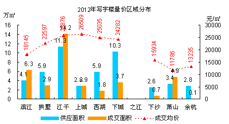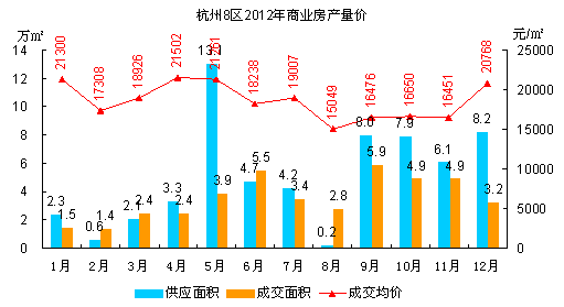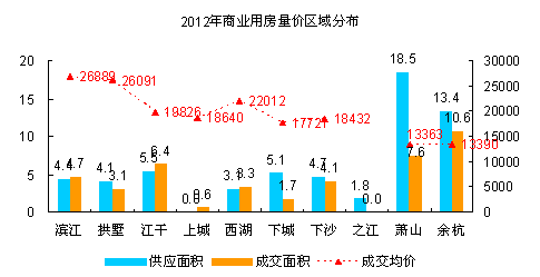 杭州8区商业房产2012年不如上年风光,供求都略逊于2011年,在住宅降价带动市场回暖的大背景下,商业房产的关注度明显下滑。