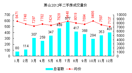 萧山二手房价格比余杭偏低,仅少数月份成交均价达到8000元/㎡以上,且未超过8500元/㎡,多数月度价格在8000元以内。成交量水平与余杭相当,成交量从8-10月大幅下降,到年底成交量翘尾上行,但成交均价下滑较大,跌至全年最低。