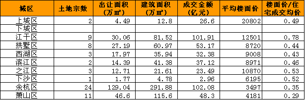 从出让面积的土地用途比例看,住宅用地和商住用地合计占比约61%,比去年上升21个百分点,引起全年平均地价上升较多。纯商业用地下降至39%,并且今年余杭和萧山仍有商业用地流拍。