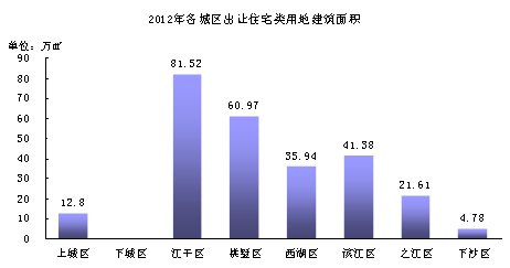 2012年主城区唯有上城区无住宅新增供应,由于处于老市区核心区,供地紧张,新增供应自然较少,加之老市区宅地基本都是定位于高端豪宅,在调控背景下去化困难,因此上市时间也有所推迟。拱墅区是2012年唯一比较明显供大于求的城区,主要是其前几年出让宅地较多,相继进入开盘节点,供应量自然增大。其存量由去年位于第三跃居到首位。